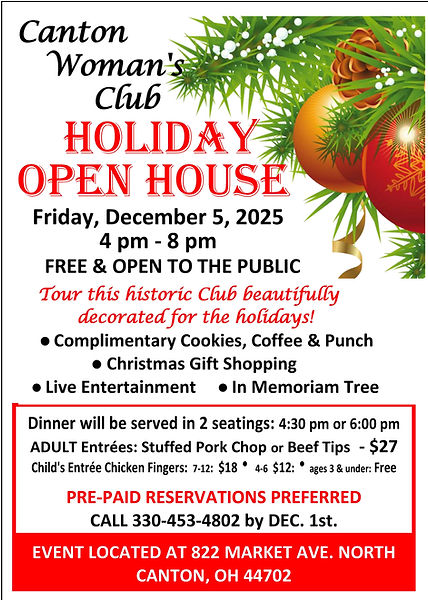 The Canton Woman's Club was established in 1920 by a group of women looking to provide a social establishment for the women of Canton. Today the membership continues the traditions of friendship, education, hard work and civic responsibility.